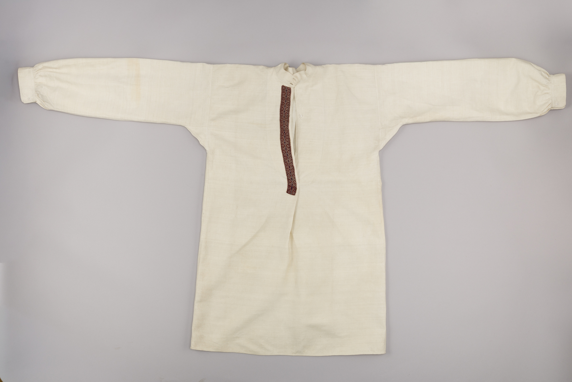 Koszula w zbiorach MEK znajduje się od 1964 roku, Do 1890 roku była używana przez Łukasza Słyszko z Zaliszcza. Wykonawca nieznany (wykonano w domu Słyszków z Zaliszcza).